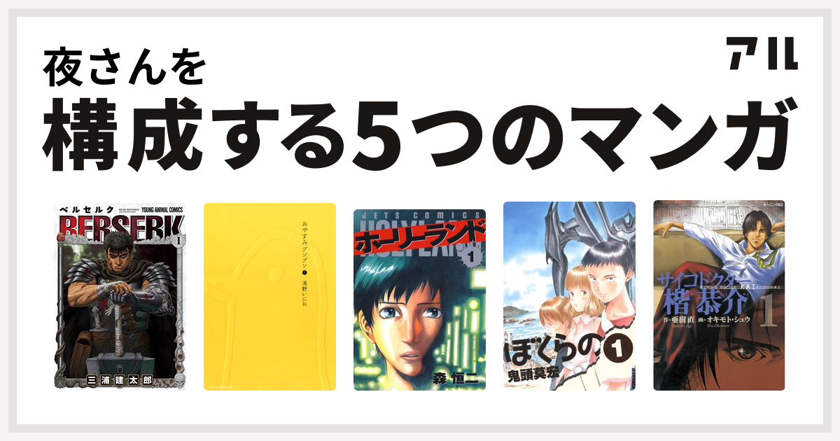 夜さんを構成するマンガはベルセルク おやすみプンプン ホーリーランド ぼくらの サイコドクター楷恭介 私を構成する5つのマンガ アル